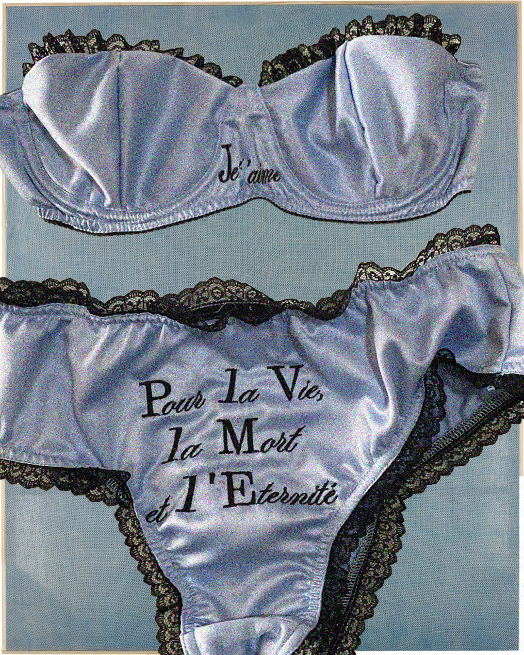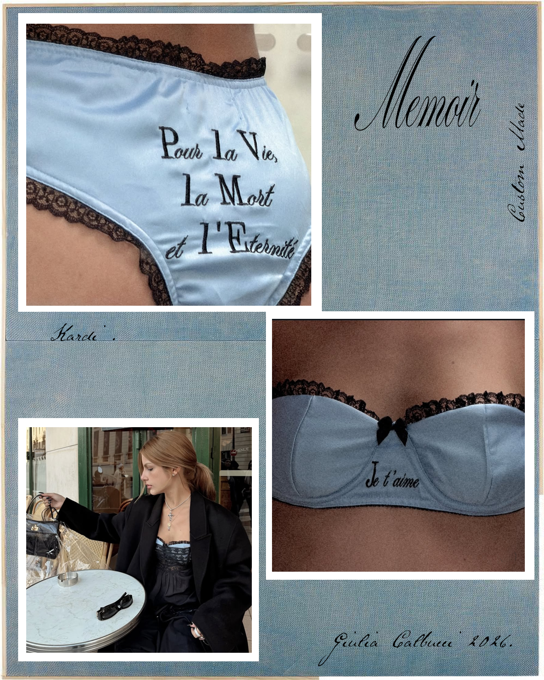 Custom Made kardi de um conjunto intimates acetinado com renda e bordado industrial.