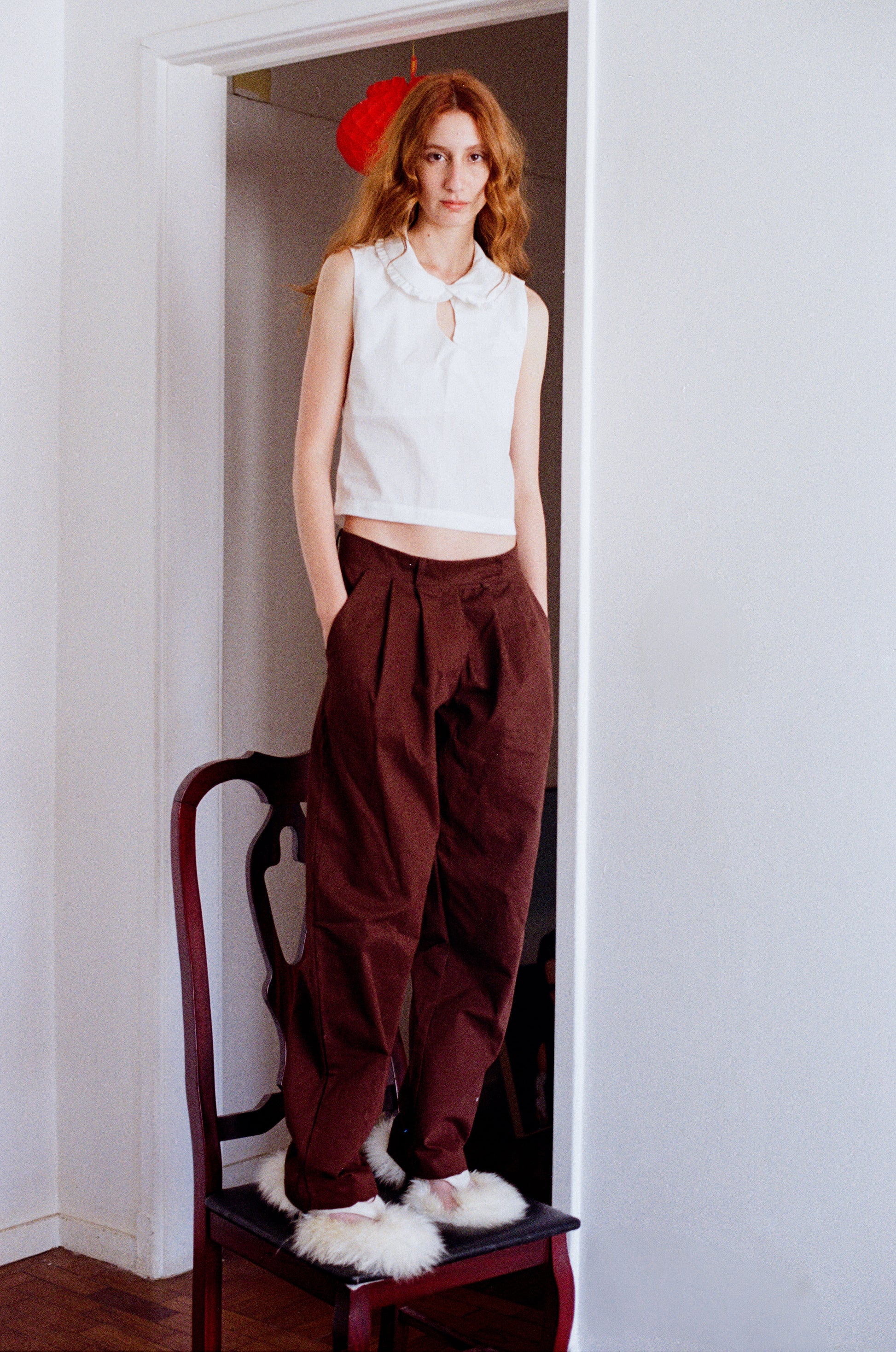 calça alfaiataria retrô em sarja